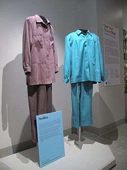 In the smaller front gallery, "Great Collections From the GLBT Historical Society Archives," curated by Historical Society Executive Director Paul Boneberg, offered an introduction to the kinds of materials collected by the society. Among the items on display were a distinctive example of the society's collection of textiles: the pantsuits that Del Martin and Phyllis Lyon wore to their wedding during San Francisco's "Winter of Love" in 2004 and again in 2008 when they became the first couple to wed during the brief period when the state's high court legalized same-sex marriage in California. On exhibit as examples of the society's artifacts collections were personal belongings of Harvey Milk. In addition, the show included examples from the society's collections of ephemera; posters; periodicals; photographs; oral history interviews; and film, video and recorded sound.[39]