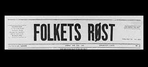 In an effort to keep the publishing operation alive, the Mengshoels resorted to an artifice widely used to beat European censorships, relaunching their publication with a new name, Folkets Røst (People's Voice) — a name regarded as one less militant than Gaa Paa.[13] The old publication was shut down in October 1918 with the ostensibly "new" paper first seeing print on December 21, 1918, following a pause in publication of some two months.[15]