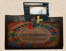 The Game of the Goose or Goose game is a board game with uncertain origins. Some people connect the game with the Phaistos Disc (because of its spiral shape), others claim that it was originally a gift from Francesco I de' Medici of Florence to King Philip II of Spain sometime between 1574 and 1587.[1] In June 1597 John Wolfe had attested that the game existed in London. It is thought to be the prototype for many of the commercial European racing board games of recent centuries. The game is mostly played in Europe and seen as family entertainment. Commercial versions of the game appeared in the 1880s and 1890s, and feature typical old European characteristics such as an old well and children in clothes from the period. In the 1960s, the game company CO-5 marketed a variant called Gooses Wild. The aim of the game is to reach square number sixty-three before any of the other players with obstacles such as, the Inn, the Bridge, Death and many more. The age range is four years old and above. The number of players ranges from two to four. It is normally started by the youngest player.
