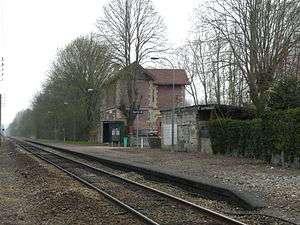 The Gare d'Heilles-Mouchy (Heilles-Mouchy station) is a railway station located in the commune of Heilles in the Oise department, France. The station is served by TER Picardie trains from Creil to Beauvais.