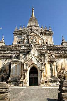Gawdawpalin Temple (Burmese: ကောတော့ပလ္လင်ဘုရား, IPA: [ɡɔ́dɔ̰pəlɪ̀ɴ pʰəjá]) is a Buddhist temple located in Bagan, Burma (Myanmar). Construction of the pagoda began during the reign of Narapatisithu (1174–1211)[1]:178 and completed on 26 March 1227[2] during the reign of Htilominlo (1211–1235). Gawdawpalin Temple is the second tallest temple in Bagan. The temple is similar in layout to Thatbyinnyu Temple. Gawdawpalin Temple is two storeys tall, and contains three lower terraces and four upper terraces. The temple was heavily damaged during the 1975 earthquake and was reconstructed in following years.