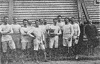 Gefle IF was originally formed as Gefle SK in December 1882 but changed the name to its current form only months after.[5] The name "Gefle" is one of the old variations of spelling for the town Gävle which was used from the 1500s to the early 1900s.[6] The multisports club mainly focused on winter sports during its early years, with rowing being their only summertime activity. In 1896 the club started having regular football training sessions under the guidance of an English accountant by the name of Robert Carrick. Born in England, he had grown up in Gävle but returned to his homeland for a few years as a student. There he had picked up the new sport which he brought back with him to Sweden and introduced at Gefle IF.[5]