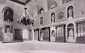 The opening ceremony of the Genoa Conference took place at 3 pm on Monday, 10 April 1922 at the Palazzo di San Giorgio, one of the oldest palaces in the city.[17] Delegations entered at one end of the palace, running a gauntlet of news photographers from around the world, while at the opposite end guests, journalists, and members of delegation support staffs disembarked from a column of automobiles to go inside the building.[18] Admission to journalists was through tickets distributed ahead of the event, which were strictly limited.[18]