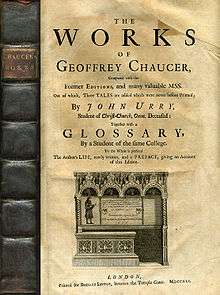 - ↑ Brewer, Derek, ed. (1978). Chaucer: The Critical Heritage. Volume 1: 1385–1837. London: Routledge & Kegan Paul. p. 230. ISBN 0-7100-8497-8. Retrieved 18 May 2014.