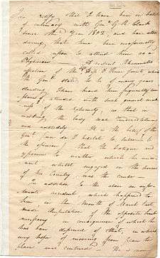 In his later years Clark's mounting debts made it impossible for him to retain ownership of his land, since it became subject to seizure due to his debts. Clark deeded much of his land to friends or transferred ownership to family members so his creditors could not seize it.[56] Lenders and their assignees eventually deprived the veteran of nearly all of the property that remained in his name. Clark, who was at one time the largest landholder in the Northwest Territory, was left with only a small plot of land in Clarksville.[57] In 1803 Clark built a cabin overlooking the Falls of the Ohio, where he lived until his health failed in 1809.[29] He also operated a small gristmill, which he worked with two African American slaves.[57]