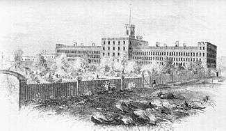 Not ten days after the end of the Harrington case, Dixon was charged with forging a signature on a bail bond pertaining to his previous debt from July 1835. He was sent to Lowell and jailed. The press responded with its usual glee: "George has been a great eulogist, the defender of the Constitution! But he cannot defend himself."[29] At his hearing on February 15, bail was set at $1000, an unheard of amount for the time.[30] Unable to pay, he was transferred to a jail in Concord, Massachusetts.