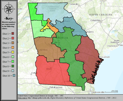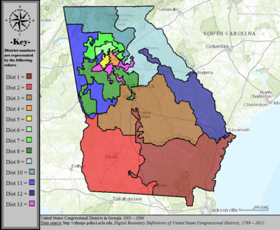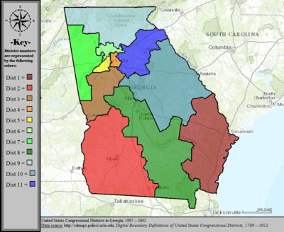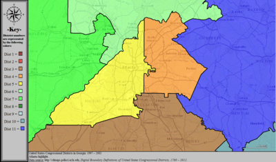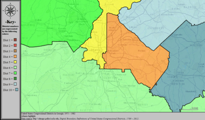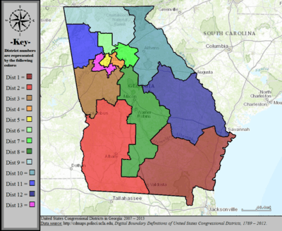 Table of United States congressional district boundary maps in the State of Georgia, presented chronologically.[2] All redistricting events that took place in Georgia between 1973 and 2013 are shown.