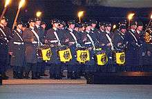 One of the most visible traditions of the modern Bundeswehr is the Großer Zapfenstreich; this is a form of military tattoo that has its origins in the landsknecht era. The FRG reinstated this formal military ceremony in 1952, three years before the foundation of the Bundeswehr. Today it is performed by a military band with 4 fanfare trumpeters and timpani, a corps of drums, up to two escort companies of the Bundeswehr's Wachbataillon (or another deputized unit) and Torchbearers. The Zapfenstreich is only performed during national celebrations or solemn public commemorations. It can honour distinguished persons present such as the German federal president or provide the conclusion to large military exercises.