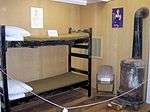 Life for the Germans in American POW camps was reportedly "firm but fair".[25] There were insufficient American guards, especially German speakers. They mostly supervised the German officers and NCOs who strictly maintained discipline.[12][26][11]:33–34[15] The Germans woke their own men, marched them to and from meals, and prepared them for work;[27] their routine successfully recreated the feel of military discipline for prisoners.[11]:34 Prisoners had friendly interaction with local civilians[27] and sometimes were allowed outside the camps without guards on the honor system[13]:104,223 (Black American guards noted that German prisoners could visit segregated restaurants that they could not.[20]:52–53), luxuries such as beer and wine were sometimes available, and hobbies or sports were encouraged.[14] Alex Funke, a former POW at Camp Algona, wrote: "We all were positively impressed by the USA....We all had been won over to friendly relations with the USA."[28] Indeed, unauthorized fraternization between American women and German prisoners was sometimes a problem.[24][15] Several camps held social receptions with local American girls, and some Germans met their future wives as prisoners.[13]:25–26[19]