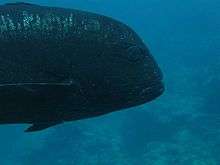 The giant trevally is a powerful predatory fish, from the estuaries it inhabits as a juvenile to the outer reefs and atolls it patrols as an adult.[21][22] Hunting appears to occur at different times of the day in different areas of its range; off South Africa it is most active during the day, especially at dawn and dusk,[19] while off Zanzibar and Hong Kong, it is nocturnal in its habits.[40][41] The species' diets have been determined in several countries and habitats; their diets generally vary slightly by locations and age. In all but one study (which was of juveniles), the giant trevally dominantly takes other fishes, with various crustaceans, cephalopods and occasionally molluscs making the remainder of the diet.[10][42] In Hawaii, the species has a predominantly fish-based diet consisting of Scaridae and Labridae, with crustaceans, including lobsters, and cephalopods (squid and octopus) making up the remaining portion. The large number of reef fishes suggests it spends much of its time foraging over shallow-water reef habitats, but the presence of squid and the schooling carangid Decapterus macarellus indicates exploitation of more open-water habitats, as well.[21] Off Africa, the diet is similar, consisting mostly of fish including eels, with minor squid, octopus, mantis shrimp, lobsters and other crustaceans.[40] Younger fish inside Kaneohe Bay, Hawaii showed the only instance where crustaceans were preferred over fish; stomatopods, shrimp and crabs were the most common prey taken at 89% of stomach content by volume, with fish, mostly of the family Blennidae, making up only 7% of the stomach contents.[26] Estuarine fish in both Hawaii and Australia have mostly fish-based diets, with crustaceans such as prawns and amphipods also of importance, and they are known to take more novel prey, such as spiders and insects, in these habitats.[22][43] Juvenile turtles and dolphins were reported being found within the stomach contents of larger giant trevally.[44] Studies of different size classes of fish have found their diets change with age in some locations, with the changes relating to an increased volume of fish taken.[35]