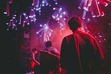 In July of 2013, Glasslands announced that they had upgraded to a Danley Labs Inc. sound system.[26] Under PopGun's leadership, the venue took on more late-night parties with a DJ focus. These included select dates with DJ Jonathan Toubin as well as a monthly residency with the neo-disco and house collective Discovery. The themed Cat Face and Rebel Bingo nights found a home at Glasslands, as did the Brooklyn Electronic Music Festival. The Adventure[s] team also put on a number of notable parties including the season Robyn-themed party, an emo Valentine's dance and a Twin Peaks-themed Halloween party.[27] Major electronic acts and DJs including Jon Hopkins, Baauer, Mister Saturday Night, Omar S., and Sophie (PC Music) all made memorable stops. Bands that made repeated stops during this period include Unknown Mortal Orchestra, How To Dress Well, Crocodiles, Lower Dens, Dum Dum Girls, Le1f, The Range, DIIV, Trust, Shigeto, MØ, Hooray For Earth, Zambri, The Yellow Dogs, King Krule, Light Asylum, THEEsatisfaction, Cloud Nothings, Anamanaguchi, Kelela, Mon Khmer, Air Waves, Majical Cloudz, Peelander-Z, Slow Magic, Mykki Blanco and Chrome Sparks.[18]