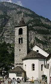 In the 18th and 19th Centuries the village was hit by devastating avalanches. On 14 October 2000, a third of the village was destroyed by a landslide that claimed 13 lives and destroyed eight buildings, including the western part of the Stockalper tower, which was built in 1650.[3]