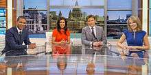 Awards and nominationsGood Morning Britain was nominated for three TRIC Awards in 2015. Susanna Reid was awarded Newscaster of the Year.[7] "Newscast Studio" named the programme's set as Best International Set of the Year 2015.[8] Good Morning Britain was nominated in the 2016 TV Choice Awards for the "Best Daytime TV Programme" but failed to win.[9] Good Morning Britain jointly won the PinkNews Broadcaster of the Year Award with Victoria Derbyshire in 2016. [10] The show has reached the Longlist for The National Television Awards 2017 in the Live Magazine Show category. References