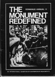 After the success of the first, Shifreen and artist Scott Siken began organizing a second show.[3] Entitled The Monument Redefined, the 1982 show was held in three locations. The outdoor site covered twelve acres with artwork visible from the window of Brooklyn's F subway.[5][12] The space for the two indoor sites was donated by the Downtown Brooklyn Cultural Center, while sponsors included the Department of Parks and Recreation, the Decentralization Program of the New York State Council on the Arts,[3] The City of New York, Con Edison, the F.W. Woolworth Company, and the Organization of Independent Artists.[5]