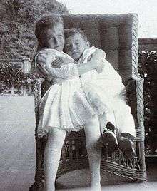 Anastasia's daring occasionally exceeded the limits of acceptable behavior. "She undoubtedly held the record for punishable deeds in her family, for in naughtiness she was a true genius", said Gleb Botkin, son of the court physician Yevgeny Botkin, who later died with the family at Yekaterinburg.[12] Anastasia sometimes tripped the servants and played pranks on her tutors. As a child, she would climb trees and refuse to come down. Once, during a snowball fight at the family's Polish estate, Anastasia rolled a rock into a snowball and threw it at her older sister Tatiana, knocking her to the ground.[9] A distant cousin, Princess Nina Georgievna, recalled that "Anastasia was nasty to the point of being evil", and would cheat, kick and scratch her playmates during games; she was affronted because the younger Nina was taller than she was.[13] She was less concerned about her appearance than her sisters. Hallie Erminie Rives, a best-selling American author and wife of an American diplomat, described how 10-year-old Anastasia ate chocolates without bothering to remove her long, white opera gloves at the St. Petersburg opera house.[14]