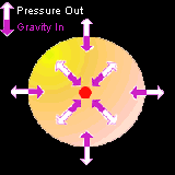 The most common reference to gravitational compression is stellar evolution. The Sun and other main-sequence stars are produced by the initial gravitational collapse of a molecular cloud. Assuming the mass of the material is large enough, gravitational compression reduces the size of the core, increasing its temperature until hydrogen fusion can begin. This hydrogen-to-helium fusion reaction releases energy that balances the inward gravitational pressure and the star becomes stable for millions of years. No further gravitational compression occurs until the hydrogen is nearly used up, reducing the thermal pressure of the fusion reaction.[2] At the end of the Sun's life, gravitational compression will turn it into a white dwarf.[3]