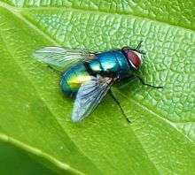 The name green bottle fly or greenbottle fly is applied to numerous species of Calliphoridae or blow fly, in the genera Lucilia and Phaenicia (the latter is sometimes considered a subgenus of the former).