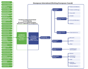 Each regional office is led by a regional executive director elected by the regional board of directors. The regional boards also appoint a trustee to The Greenpeace International Annual General Meeting, where the trustees elect or remove the board of directors of Greenpeace International. The role of the annual general meeting is also to discuss and decide the overall principles and strategically important issues for Greenpeace in collaboration with the trustees of regional offices and Greenpeace International board of directors.[63]