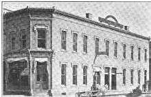In 1870-71, Myron Rider and Thomas J. Potter constructed this brick building. It has a unique set of oculus windows above the third story, giving the structure a commanding appearance. At 50 feet high, it is still the tallest building located along Lafayette.[4]