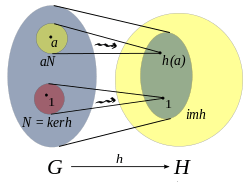 In mathematics, given two groups, (G, ∗) and (H, ·), a group homomorphism from (G, ∗) to (H, ·) is a function h : G → H such that for all u and v in G it holds that