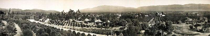 In the spring of 1882, Mr. E. J. Waite of Wisconsin planted the first orange grove in the city. For almost 75 years, the city was the center of the largest navel orange producing region in the world.[27] By the late 1930s, Redlands was a fruit-packing center surrounded by more than 15,000 acres (61 km2) of citrus groves. The city produced more than 4,200 railcars of navel oranges and 1,300 cars of Valencia oranges during the 1937–38 growing season.[28] During the 1930s and 1940s, labor activists campaigned in the canneries and packing houses for union representation and higher wages. The United Cannery, Agricultural, Packing, and Allied Workers of America (UCAPAWA) won 13 National Labor Relations Board representation elections in the Riverside-Redlands area in 1943. In 1945, the first annual Orange Queen Ball at the Redlands City Auditorium was held to raise funds for the union.[29]