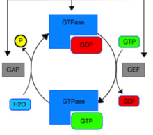 - ↑ Bos, J. L.; Rehmann, H.; Wittinghofer, A. (2007). "GEFs and GAPs: Critical Elements in the Control of Small G Proteins". Cell. 129 (5): 865–877. doi:10.1016/j.cell.2007.05.018. PMID 17540168.