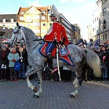 The Guard Hussar Regiment Mounted Squadron (Danish: Gardehusarregimentets Hesteskadron, HESK), is part of the Guard Hussar Regiment. The purpose of the squadron is to provide mounted escorts for the Royal family and carry ceremonial services for the Royal Danish Army. The squadron commands 75 horses, 18 officers and NCOs, and 75-100 conscripts. It furthermore has a saddler, music-teacher, veterinarian and a farrier.[1]