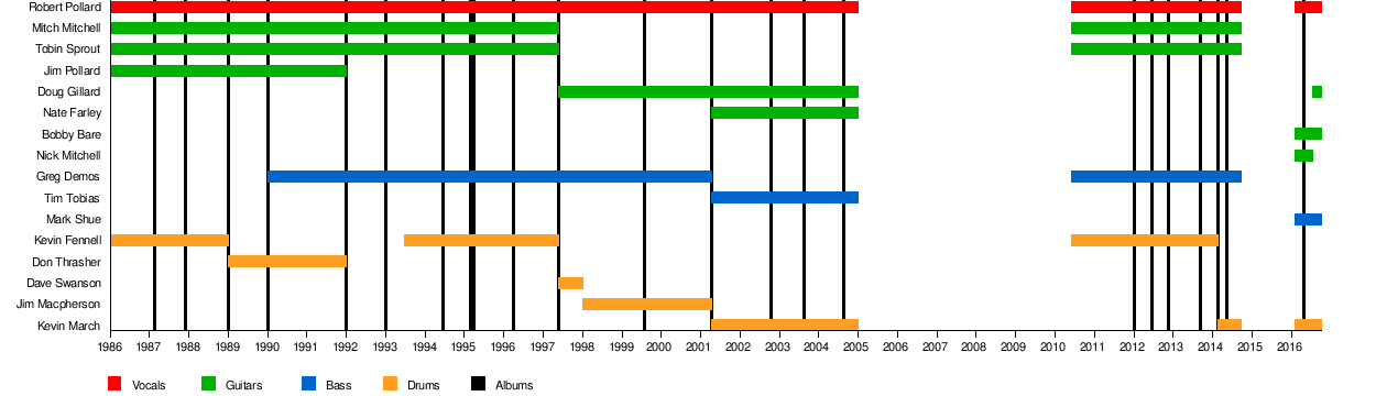 - Robert Pollard - vocals (1986-2004, 2010-2014, 2016-present)