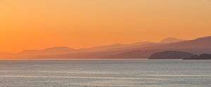 The Strait of Georgia or the Georgia Strait[1] is a strait between Vancouver Island, and the mainland coast of British Columbia, Canada and extreme northern Washington, United States. It is approximately 240 kilometres (150 mi) long and varies in width from 20 to 58 kilometres (12 to 36 mi).[2] Along with the Strait of Juan de Fuca and Puget Sound, it is a constituent part of the Salish Sea. Archipelagos and narrow channels mark each end of the Strait of Georgia, the Gulf Islands and San Juan Islands in the south, and the Discovery Islands in the north. The main channels to the south are Haro Strait and Rosario Strait, which connect the Strait of Georgia to the Strait of Juan de Fuca. In the north, Discovery Passage is the main channel connecting the Strait of Georgia to Johnstone Strait. The strait is a major navigation channel on the west coast of North America, owing to the presence of the port of Vancouver, and also due to its role as the southern entrance to the infracoastal route known as the Inside Passage.