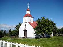 The historical main settlement in the valley is Möðruvellir, at its northeastern end, which was the site of an Augustinian monastery, founded in 1296,[4] and of one of Iceland's first academic secondary schools, founded in 1880; the school moved to Akureyri after a fire in 1902 and is now Akureyri Junior College. There is a church built in 1865–67 and an agricultural research station.[4] Möðruvellir was the birthplace of Jón Sveinsson and of Hannes Hafstein, and also of Valtýr Stefánsson (1893–1963), the editor of Morgunblaðið.[5][n 1]