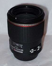 The HD Pentax-D FA 645 Macro 90mm F2.8 ED AW SR is an interchangeable macro lens for the Pentax 645 system, announced by Pentax on September 10, 2012.