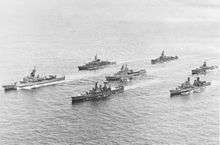 Annapolis served first with Maritime Forces Atlantic (MARLANT) and later with Maritime Forces Pacific (MARPAC). In 1965, Annapolis, while serving with MARLANT, Annapolis was ordered to the Dominican Republic as a show of Canadian support for the American intervention there.[12] In 1970, Annapolis, with the destroyer Skeena and the replenishment ship Protecteur, participated in Manitoba's centennial celebrations, making port visits at Churchill, Rankin Inlet, Chesterfield Inlet and Wakeham Bay.[1] Annapolis served as flagship in 1974 of STANAVFORLANT, the standing NATO fleet. In June, Annapolis rescued the crew of a Sea King helicopter which had ditched into the sea while attempting to land on the frigate USS Julius A. Furer. Annapolis later recovered the helicopter.[1] In December, Annapolis boarded five Soviet fishing vessels in the Atlantic believing them to be illegally fishing. The ship later released them.[13]