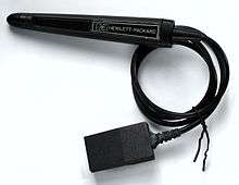 The optical wand was a barcode reader shaped like a thick pen, and was designed to read lines of HP-proprietary standard barcodes into the calculator memory. The barcodes, printed in e.g. HP solutions books, could consist of programs, numeric or alphabetical constants, and even keypresses (letting the calculator be operated without using the keyboard) — useful for diagnosing calculators where the keyboard was suspected to be faulty.