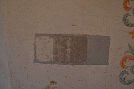 Hadum Mosques features paintings and arabesques which are also found on the walls of Islamic-Albanian sacral buildings. The interior of the domes is filled with murals of secco (dry plaster) techniques. The main motifes are stylized landscapes (in some cases with motifs of folk architecture, of kullas of Dukagin plain) with cypress trees, still nature, stars, motifs of architectural religious buildings – mosques, floral ornaments, geometrical figures and quotations for Qur'an. The mural paintings are more present in mihrab, mimber, mahfil, the crown, niches, arches and tropes. In the written names of Allah, Mohammed and his successors the red, blue, green, ochre, grey and black colors are dominant. This also shows the Islamic-Albanian baroque style. There are three layers of mural decorations. The first two layers are believed to belong to the 17th or 18th century, while the third decorated layer, according to Hijri and the date written in the timpanonin, was built in 1844. A very special part of the Arabesque are the sound tubes that look like black dots. The construction of these tubes, as told by Mimar Sinan, was to gain: a higher volume and voice extension inside the mosque, and a greater acoustic inside and out of the mosque.[1][2][3][4][5]