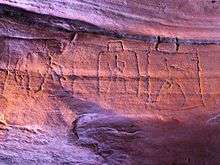- ↑ Tommy Charles, Discovering South Carolina's Rock Art (Columbia: University of South Carolina Press, 2010), 27-29. On a dry, sunny day, Charles had examined the rock for petrogylphs without success. Two historic petroglyphs were found at the same site (including the name "Thomas"), which had not been created by pecking. Charles described the discovery and the figures themselves in a seven-minute YouTube video.