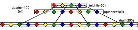 8. It is not to be confused with alla breve or odd time. Though notes usually get the same value relative to the tempo, the way the beats are divided is altered. While much music typically has a backbeat on quarter note (crotchet) beats two and four, half time would increase the interval between backbeats to double, thus making it hit on beats three and seven (counted out of an 8 beat measure [bar], common practice in half time):