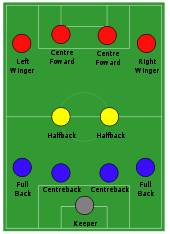 For the first time, a balance between attacking and defending was reached. When defending, the two defenders (full-backs), would zonally mark the opponent forwards (mainly the central trio), while the midfielders (halfbacks) would fill the gaps (usually marking the opposing wingers or inside forwards).