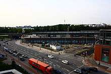 The station was rebuilt from April 2008 to April 2012 with a new station building and a new central bus station. The old station building, the old central bus station and the houses along the railway embankment were demolished. As a result of the land released, the new central bus station was moved closer to the tracks, which accommodated an extension to the CCB shopping centre.[3][4] Due to poor weather conditions and time-consuming planning of its roof, its opening was delayed from mid-December 2010 to 17 September 2011.