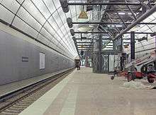 A railway to the airport has been discussed since the 1960s, including as a possible extension of the original route of U-Bahn line 4, on which work was abandoned in 1974. Further planning of a rail connection progressed slowly, partly because until the 1980s, there were plans for a new major airport at Kaltenkirchen, replacing the existing Hamburg airport.[3] It was only after the plans for the new airport were dropped that a new rail link to the airport was re-examined, but little progress was made in the late 1980s due to lack of funding. However, in 1991 a shell for part of a station was built at the airport. In 1998 the Senate of Hamburg (government) decided to expand the airport, including a rail link. Progress was delayed by protests by local residents and work finally began on 11 April 2001. However, work was again delayed by water leaks during construction in 2004 and the line was finally opened to regular traffic on 12 December 2008. On the previous day free familiarisation trips operated to the airport station.