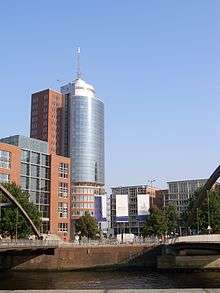 The Hanseatic Trade Center (HTC) is a major office complex in the HafenCity of Hamburg, Germany. Developed after an urban design competition in the 1980s, and built in five phases during the 1990s, it was the first new construction in the urban renewal of this part of the Port of Hamburg. Parts of the Hanseatic Trade Center along Kehrwiederfleet complement the historic Speicherstadt, while its western end at Kehrwiederspitze features two high-rise structures.