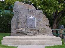 The plaque mounted on the large rock next to the Harris Museum reads in part:
