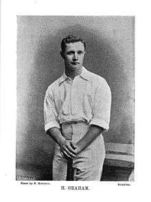 A native of Melbourne, Graham scored a century on debut in 1893 at Lord's, and scored 107 in his first Test on home soil, in Sydney. Graham was also a leading Australian rules footballer, playing for Melbourne Football Club, firstly in the Victorian Football Association (VFA), where he was runner-up in the goal kicking in 1892 with 42 goals,[1] before making a comeback in 1900 when he played two games with Melbourne in the new Victorian Football League (VFL).
