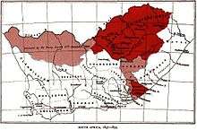 In 1847 he returned to South Africa as Governor of Cape Colony and high commissioner, with the local rank of lieutenant-general,[2] to grapple with the difficulties he had foreseen eleven years before. He took command of an expedition to deal with the disaffected Boers in the Orange River Sovereignty, and fought the Battle of Boomplaats on 29 August 1848. It has been asserted that "the half-mad Smith's" seizure of the entire region of "British Kaffraria" in 1848 was launched and carried out "entirely on his own initiative." Piers Brendon described "Smith, placing his foot on the neck of the Xhosan ruler and proclaiming, 'I am your Paramount Chief, and the Kaffirs are my dogs!'"[3]