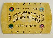 The next products Haskelite manufactured were in the toy market under the brand name "Hasko." These consisted of "fortune telling" mystic trays and mystic boards that were so called "talking boards" of your future. These included models of the Mystic Tray, Mystic Egyptian style Board, and the Hasko Mystic Board with different zodiac borders. "Hasko" was one of the prolific producers of these mystic "talking boards" in the world. The Hasko Mystic Trays were introduced in 1942 and the Hasko Mystic Boards in 1944. Sales exceeded four million of these mystic items by 1945.[16]