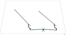 A simple single-blade setup with a center pivot (Fig. 4) is commonly used on rear windshields, as well as on the front of some cars. Mercedes-Benz pioneered a system (Fig. 5) called the "Monoblade", based on cantilevers, in which a single arm extends outward to reach the top corners of the windscreen, and pulls in at the ends and middle of the stroke, sweeping out a somewhat "M"-shaped path. This way, a single blade is able to cover more of the windscreen, displacing any residual streaks away from the center of the windscreen.