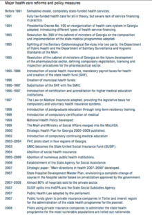 - 1 2 3 4 5 6 7 8 9 10 11 12 13 14 15 16 17 18 19 20 21 Gamkrelidze et al. 2002. "Health Care Systems in Transition: Georgia." European Observatory on Health Care Systems. Vol. 4, No. 2.