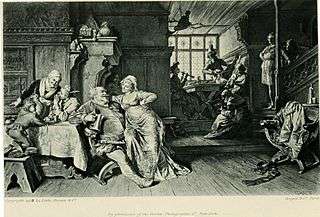 Falstaff with Doll Tearsheet in the Boar's Head tavern, illustration to Act 2, Scene 4 of the play by Eduard von Grützner