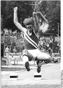 Lauterbach also competed in the long jump on an international level, winning the gold medal at the 1982 European Indoor Championships in Milan, Italy.[7] His winning result of 7.86 metres has been improved in all of the later editions of the European Indoor Championships.[8] On the national level Lauterbach won silver medals in this event at the East German championships in 1970, 1972, 1976 and 1981. Additionally he won a bronze medal in 1974.[9] He became East German indoor champion in 1982.[10]