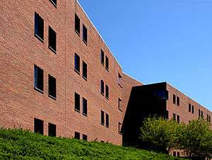 Named after physicist Frank Hereford, who was President of the University between 1974 and 1985,[1] the college opened in 1992 as New College, UVA's second residential college. It consists of five strikingly thin dorm buildings, a principal's building, and its own residential cafeteria. Hereford was designed by Tod Williams Billie Tsien Architects, which also designed the American Folk Art Museum in New York, the Neurosciences Institute in San Diego, and the Student Art Building of Johns Hopkins University.[2]