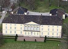 Wedel Jarlsberg was married to Karen Anker, the only child of prime minister Peder Anker. From her family he inherited a vast fortune, consisting mostly of the forests around Christiania – present day Oslo. In 1812, Johan Caspar Herman Wedel Jarlsberg rebuilt the manor house at Jarlsberg (Jarlsberg hovedgård) in the empire style. Around the manor there were arranged big, but simple garden and parks areas.[2]